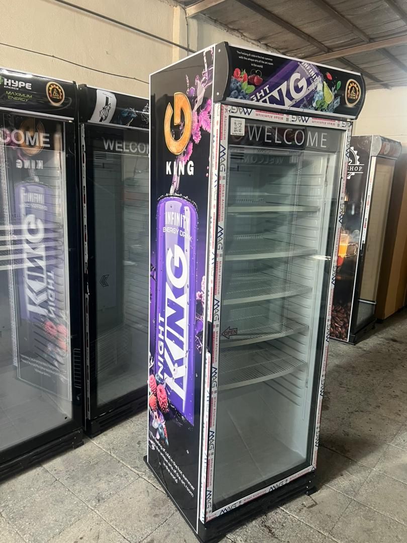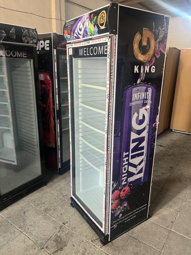 یخچال ویترینی ایستاده عرض 70 سانت طرح نوشیدنی انرژی زا king کینگ بنفش