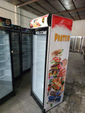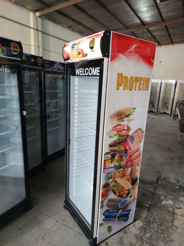 فریزر بستنی ایستاده ویترینی عرض 70 سانت تک درب طرح پروتئین سوسیس کالباس