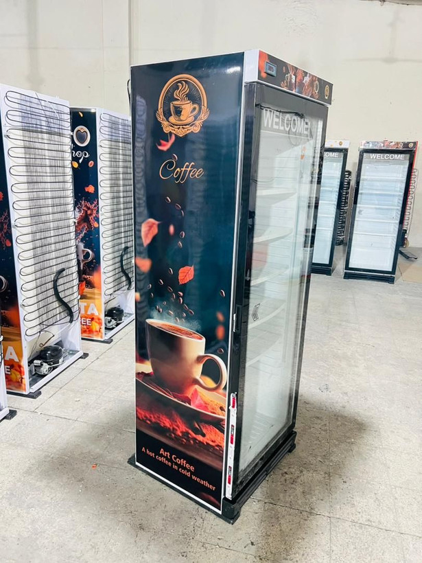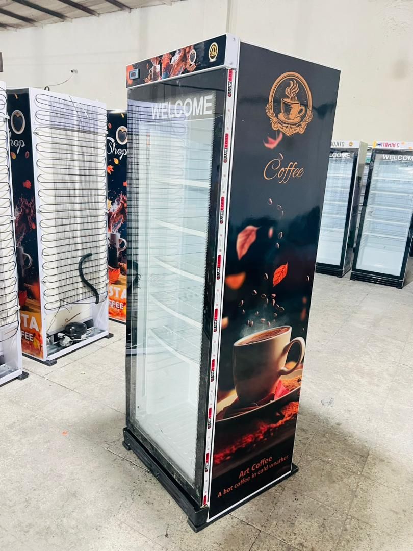 یخچال ویترینی ایستاده عرض 70 سانت طرح کافه coffee تاج و ارتفاع کوتاه